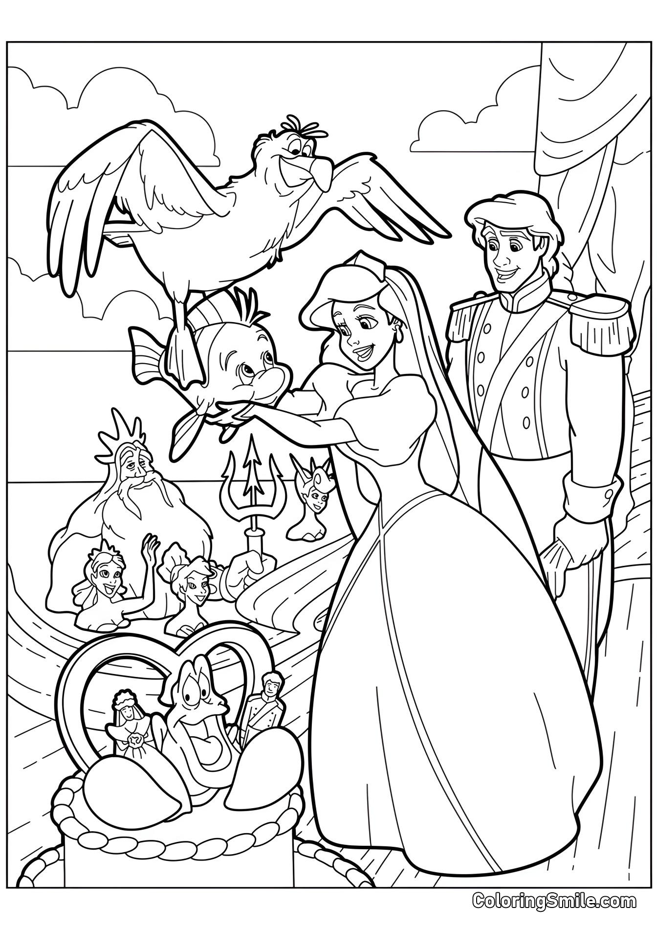 Troverai anche Scuttle il gabbiano, che sostiene di essere un esperto di artefatti umani, e Sebastian, il granchio e fidato consigliere del Re Tritone, tra i disegni da colorare.
